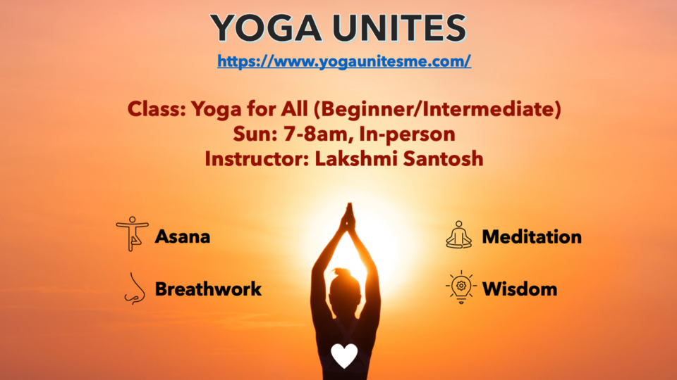 Yoga for All is a 1hour class combining Asana, Breathwork, Meditation and Wisdom. It is suitable for adults of all ages at beginner or intermediate level.